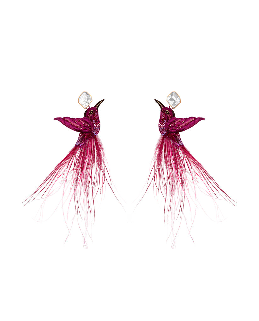 Inspired by nature, these pink bird earrings are hand-embroidered with exquisite detail, offering a charming and sophisticated accent. Perfect for pairing with your summer looks, adding a playful yet elegant touch to any outfit.