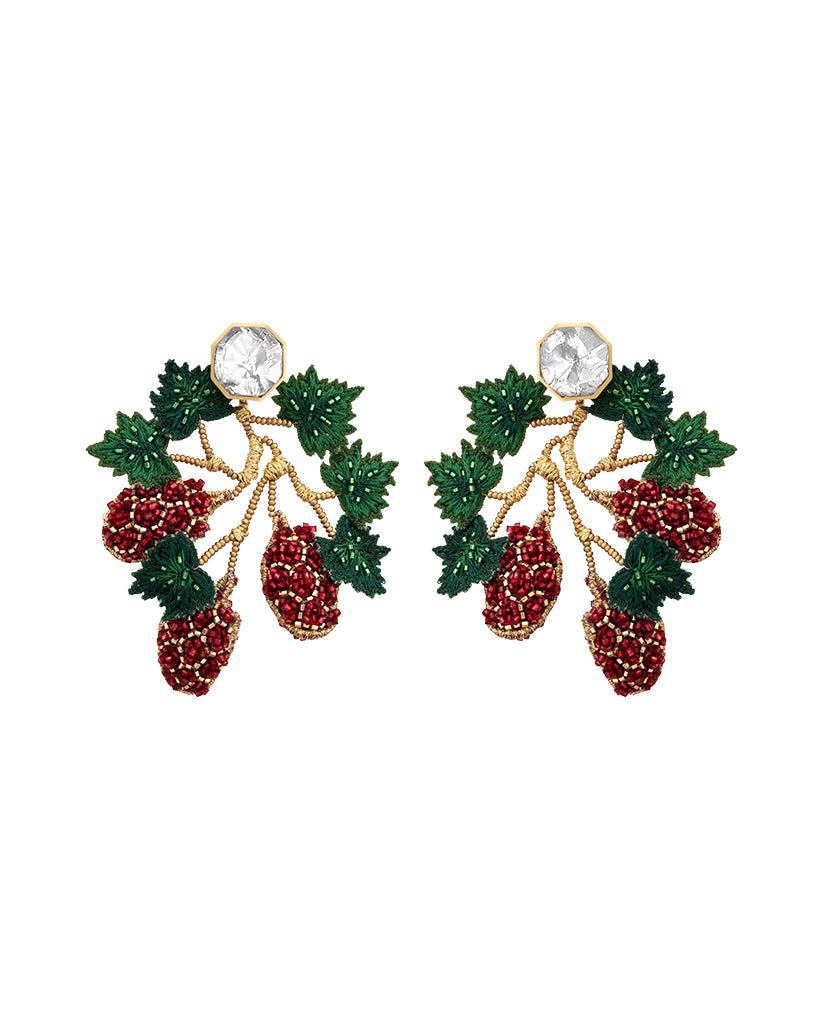 Hand-embroidered in rich green and red, these berry-inspired earrings add a sophisticated burst of color to your look. Pair them with a breezy summer dress or casual outfit to bring a playful yet elegant pop of color.